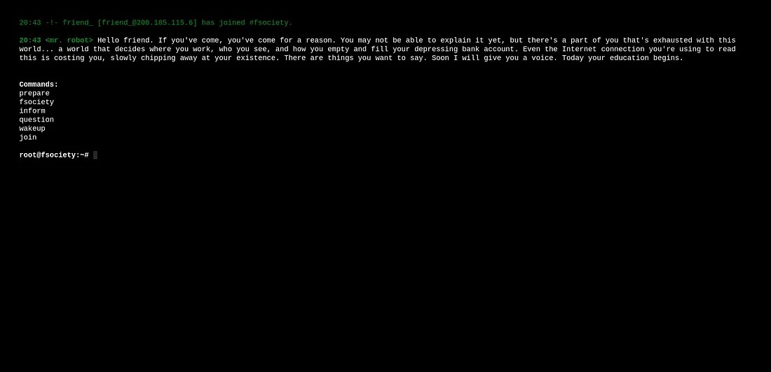 The webpage and its content is gives an environment like Mr.Robot TV series.